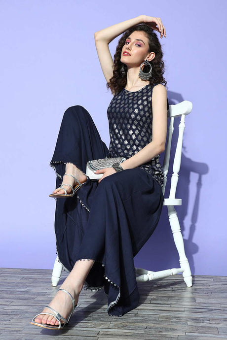 Pink Color Crepe Silver Foil Printed Sharara Suit Set