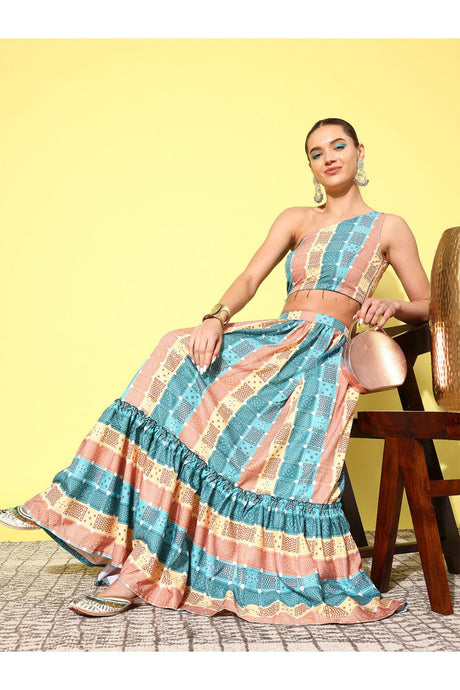 Green Rayon Blend Floral Printed Straight Co Ords Sets