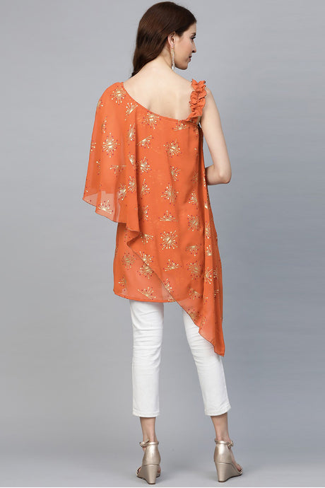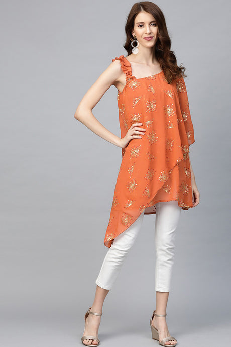 Orange Rayon Blend Floral Printed Straight Co Ords Sets