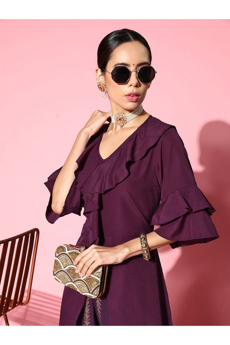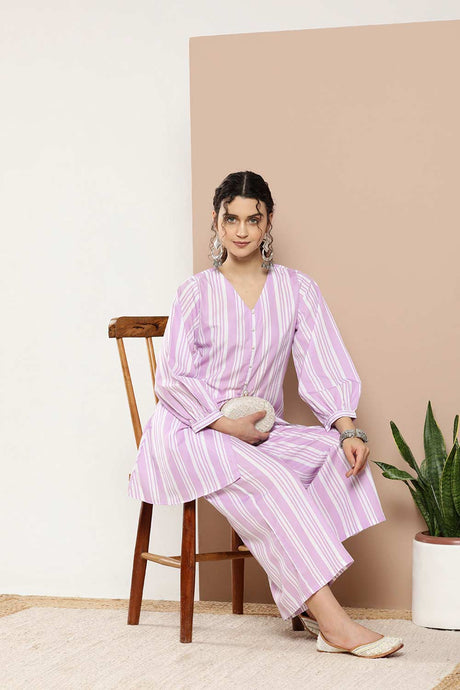 Lavender Poly Crepe Printed Kurta Palazzo Set With Dupatta
