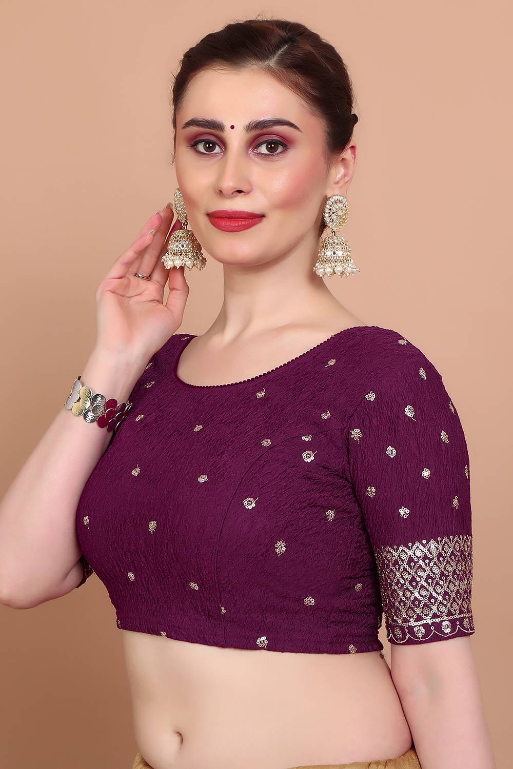 Transform your saree look with our Blouse the ultimate blend of style and comfort. Made from soft and breathable Lycra it ensures a snug yet flexible fit. The intricate Embroidered make this blouse a wardrobe essential. Perfect for Festive it works beautifully with traditional or modern sarees alike. Team it with a silk saree, a bold necklace, and embellished sandals for a sophisticated look. Redefine your saree style with Blouse