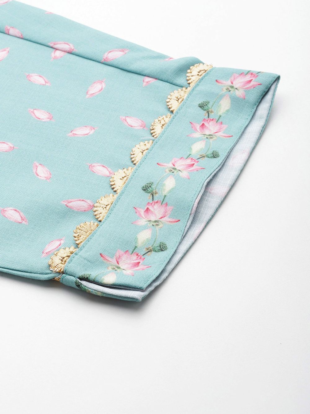 Women's Blue Cotton Blend Printed Kurti Pant Set