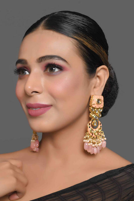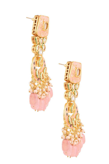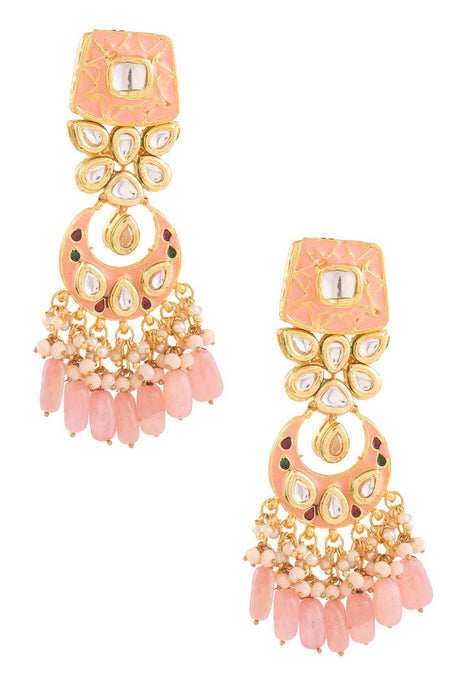 Peach Enameled Kundan Studded Earrings