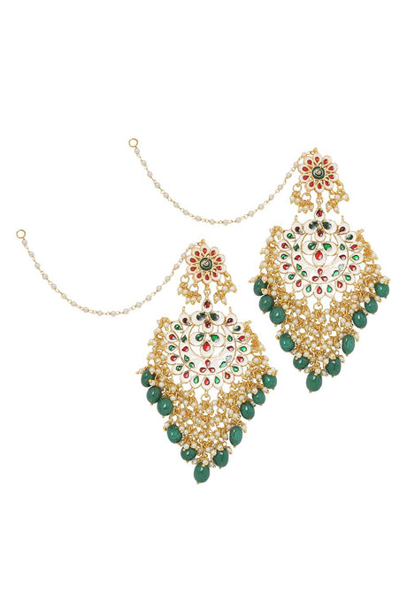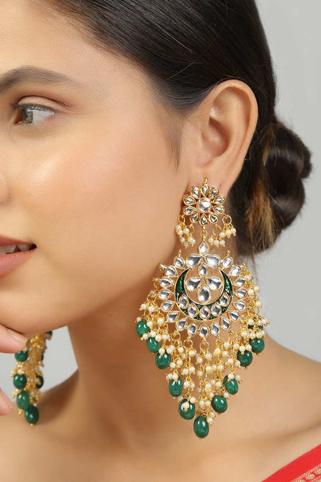 Green And Gold Kundan And Pearls Chandbali Earring