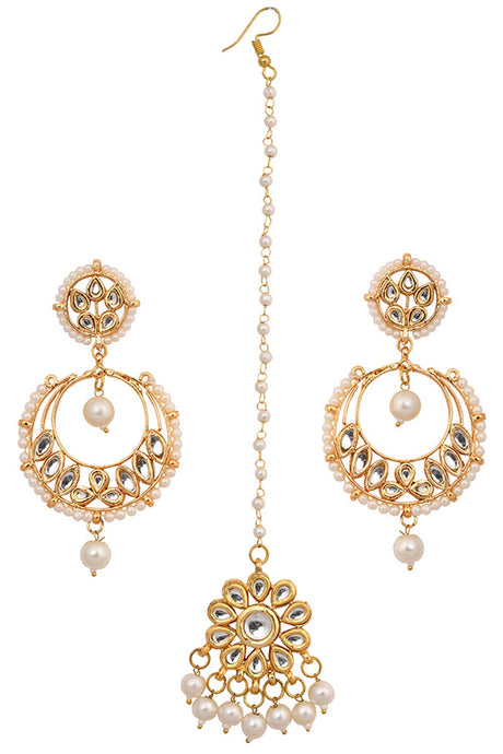 Pearl Beaded Kundan Inspired Mang Tikka With Chandbali