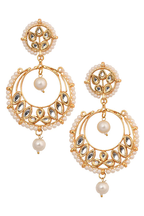Gold And White Chandbali Earring With Kundan And Pearls