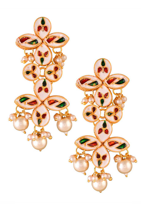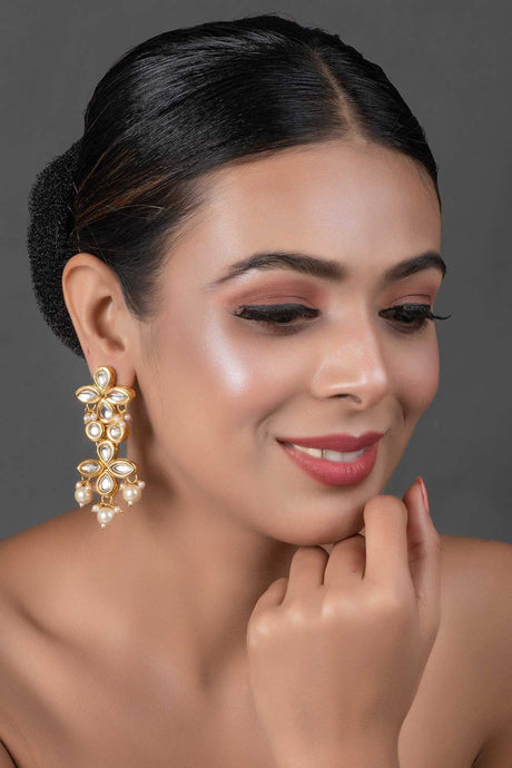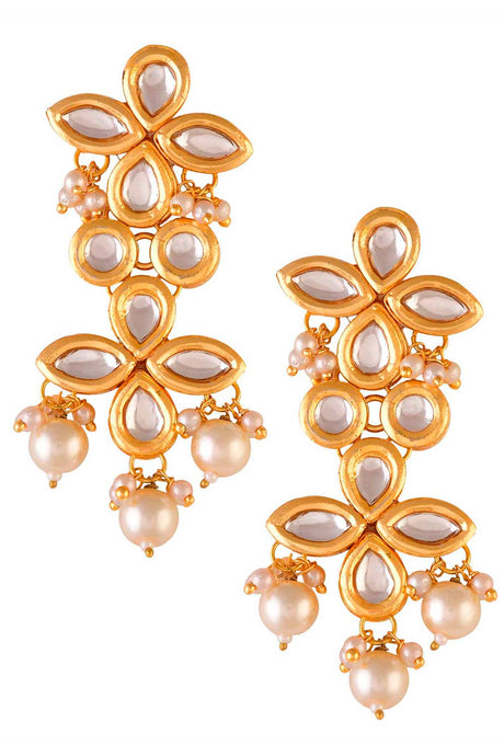 Gold Tone Pearl Beaded Kundan Earrings