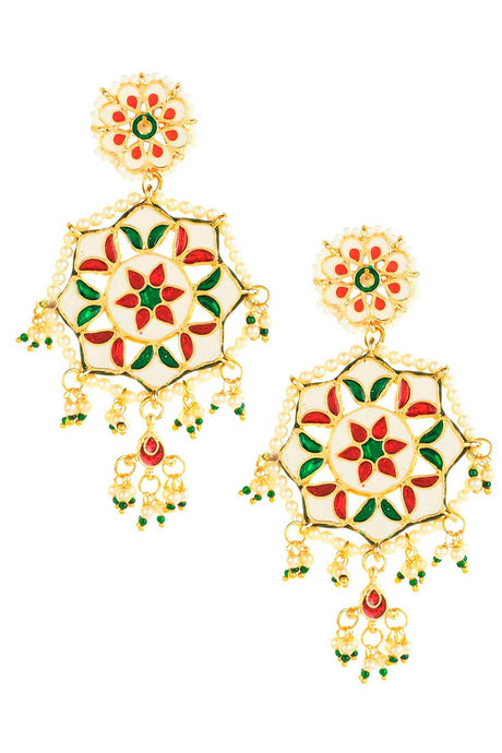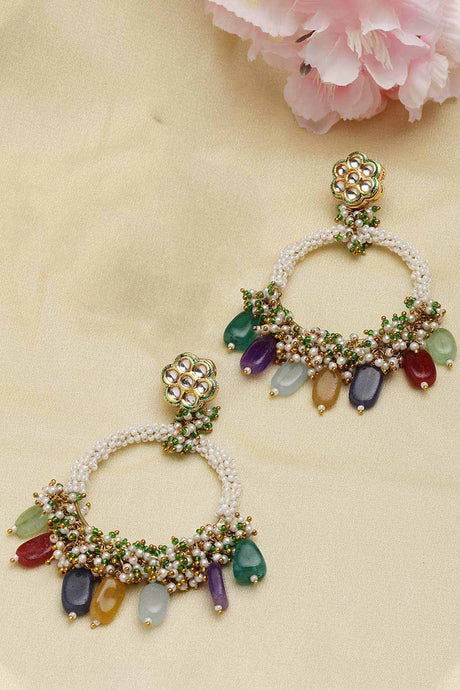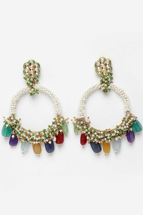 Multi-Color And Gold Gold-Plated Kundan And Pearls Chandbali Earring