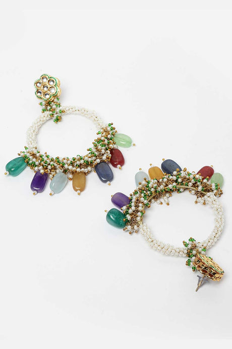 Gold And White Gold-Plated Pearls And Natural Stones Chandbali Earring