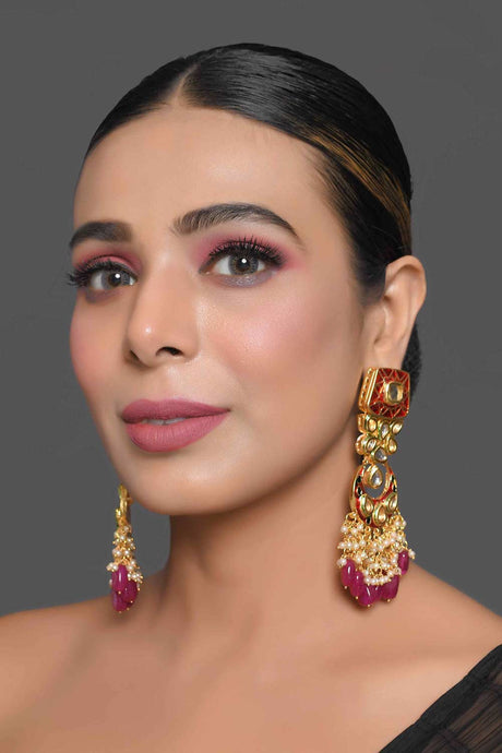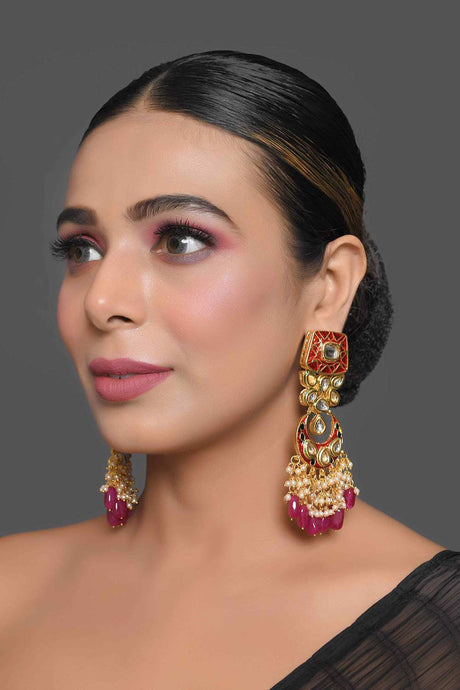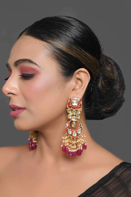 Kundan Inspired Mahroon Enameled Earrings
