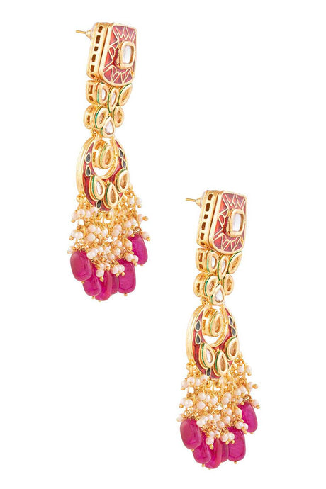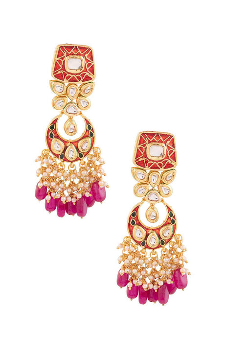 Pink And Red Gold-Plated Kundan And Pearls Chandbali Earrings