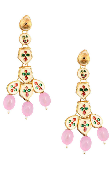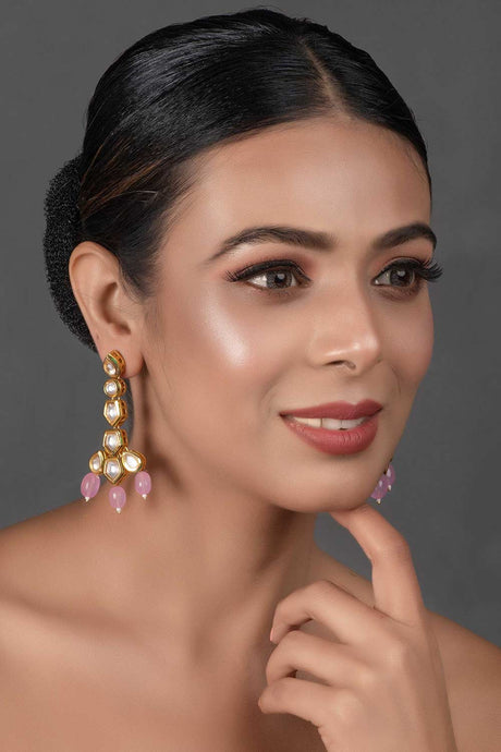 Pink Gold Tone Handcrafted Kundan Earrings