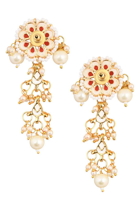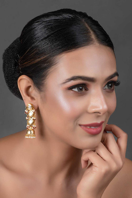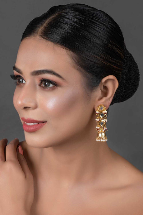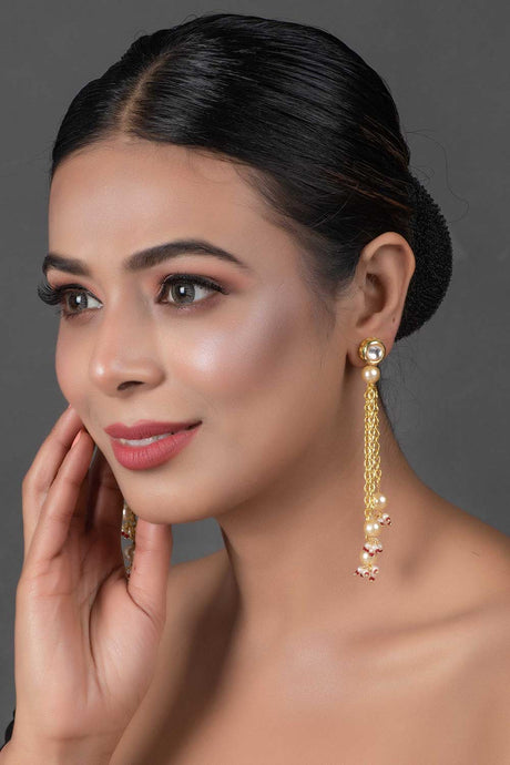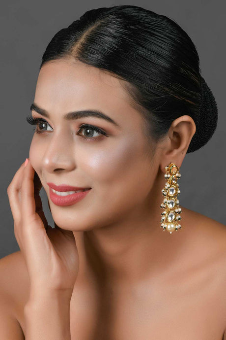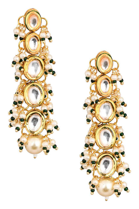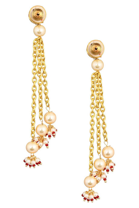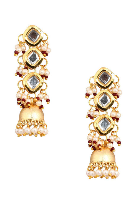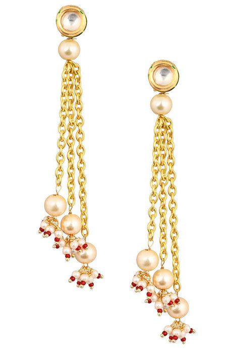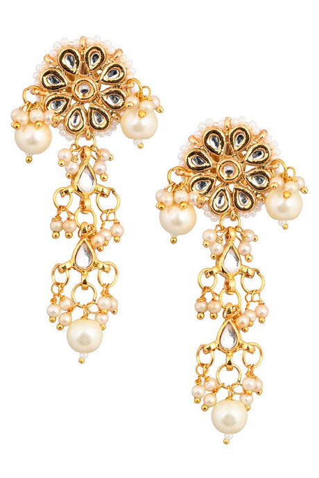 Gold Tone Pearl Beaded Kundan Contemporary Earrings
