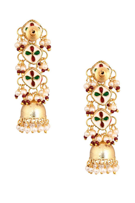 Floral Kundan Earrings With Hanging Jhumki