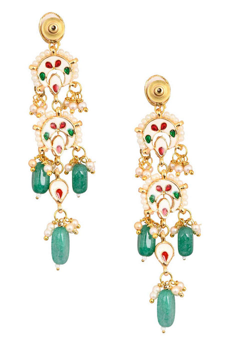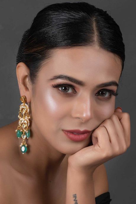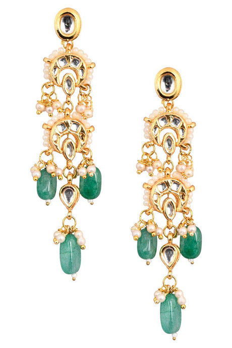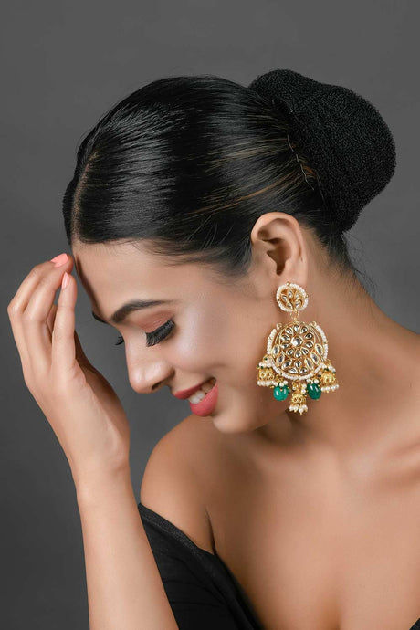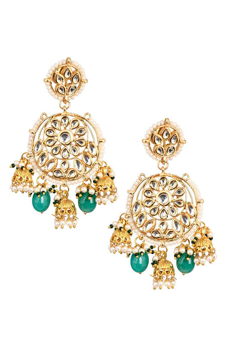 Green And Gold Gold-Plated Kundan And Pearls Chandbali Earrings
