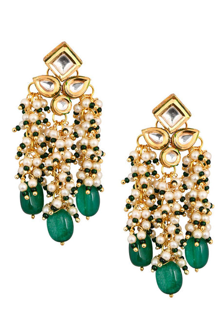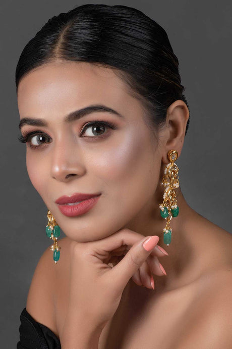 Emerald Beaded Kundan Contemporary Earrings