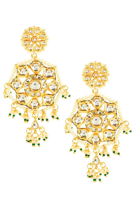 Green And White Gold-Plated Kundan And Pearls Chandbali Earring