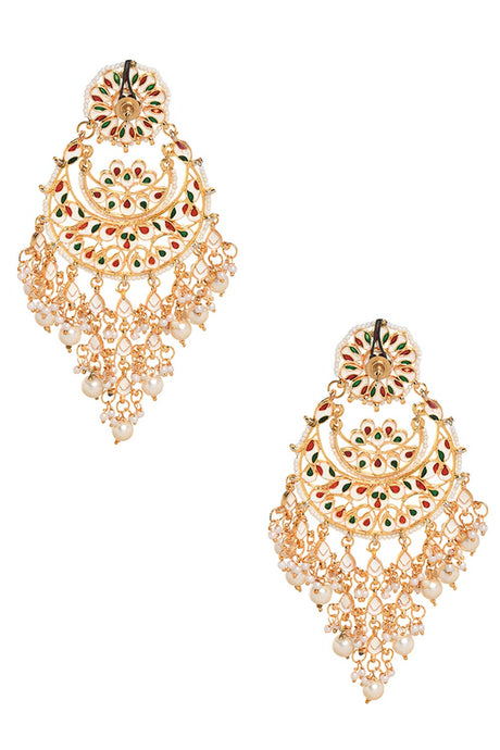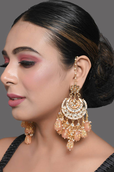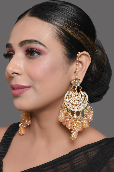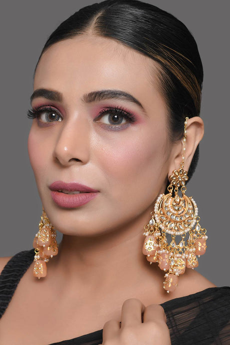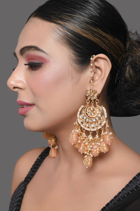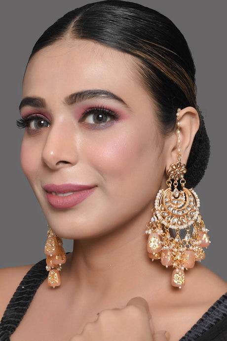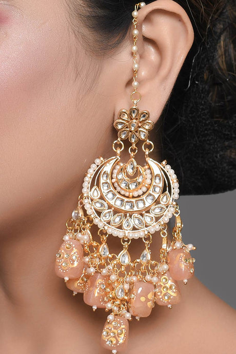 Peach Gold Tone Kundan Inspired Chandbali Earrings