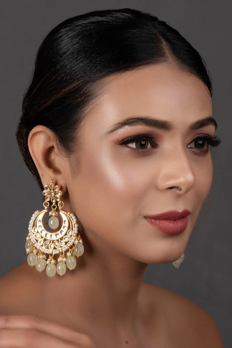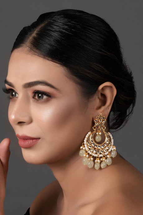 Women's Sterling Silver Kundan Chandbali Earring In White