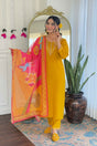 Mustard Solid Chanderi Straight Cut Suit Set