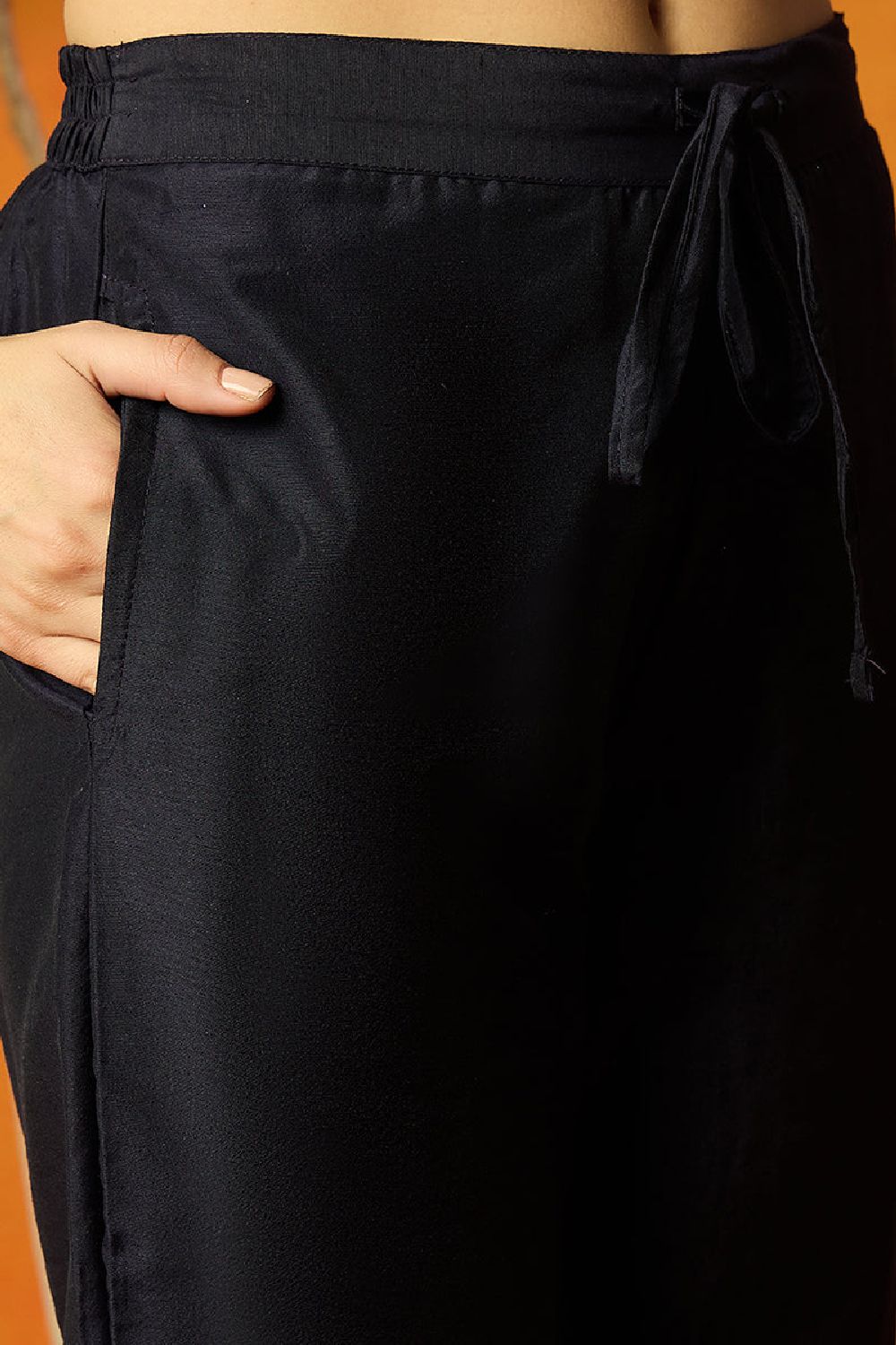 Navy Blue Poly Chanderi Jacquard Straight Cut Suit Set