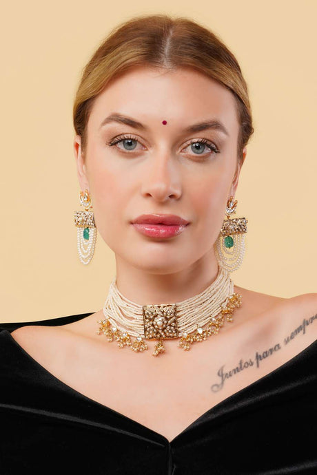 Gold And White Kundan And Pearls Necklace And Earring Set