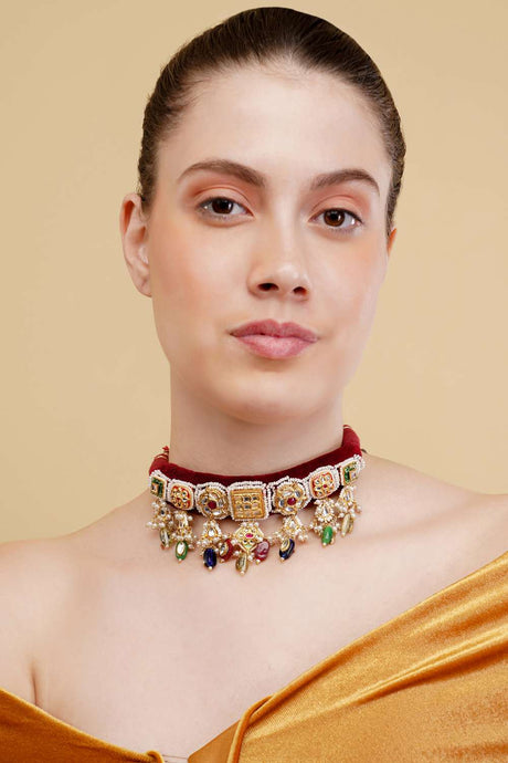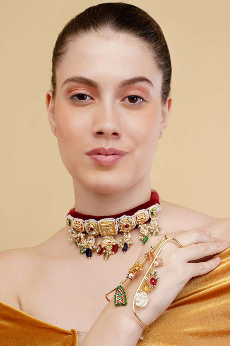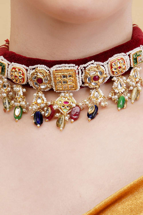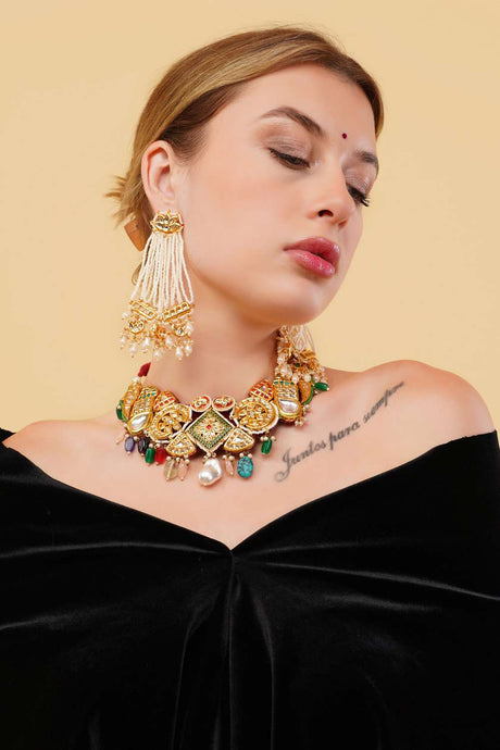 Hand Made Alloy Multicolor Kundan Heavy Pearl Beads Choker Necklace Set