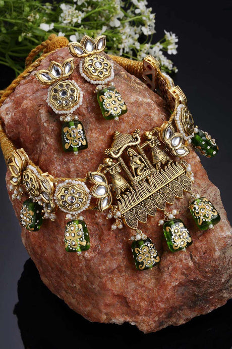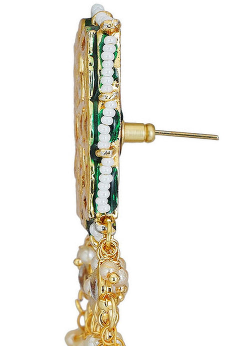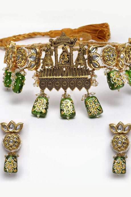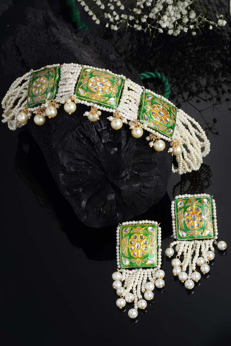 Green And White Gold-Plated Kundan And Pearls Jewelry Set