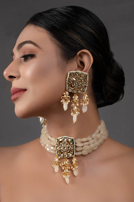 Sale price $76.00 USD Regular price $87.00Unit price /Unavailable Pearl Beaded Kundan Choker Necklace With Earrings