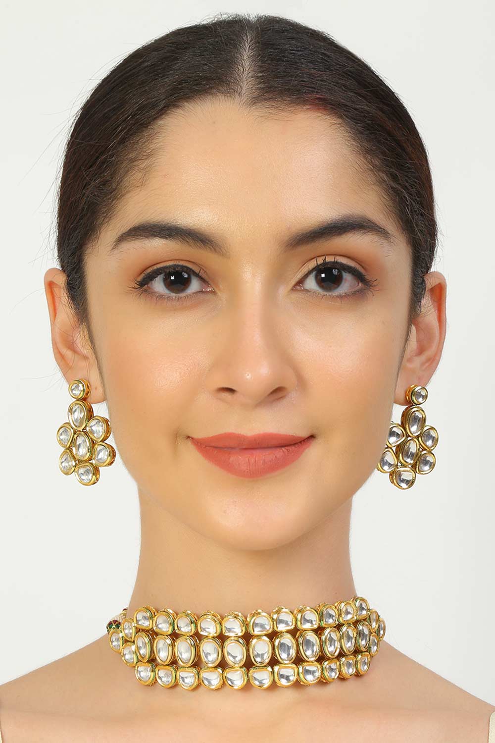 Handcrafted kundan choker necklace with drop matching earrings. Team it with your outfits to exude style.