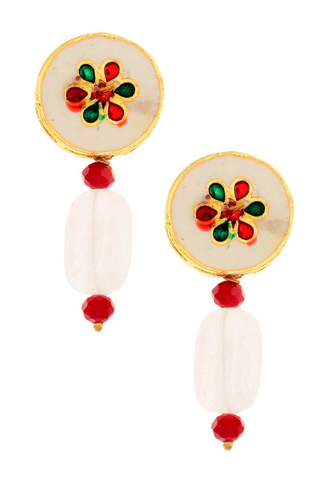 Ivory Beaded Handcrafted Kundan Choker With Earrings