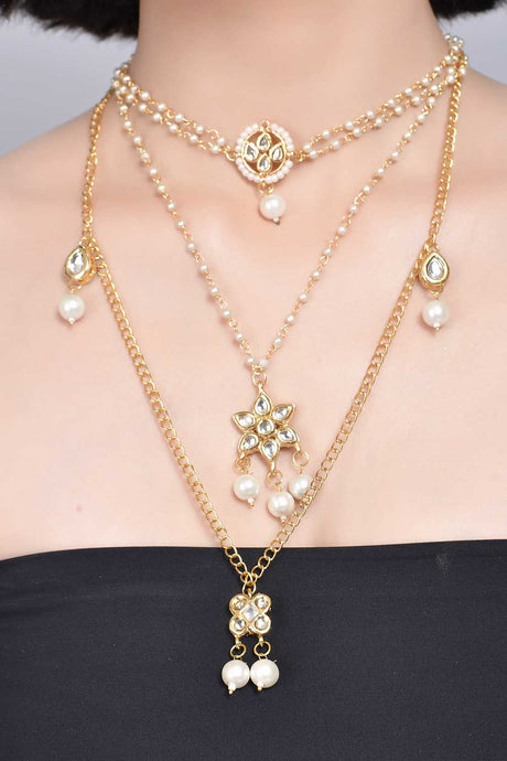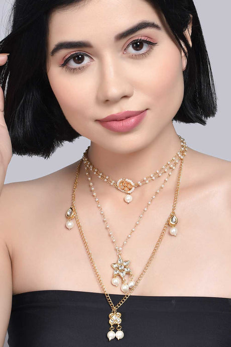 Multilayered Pearl Beaded Kundan Necklace With Choker