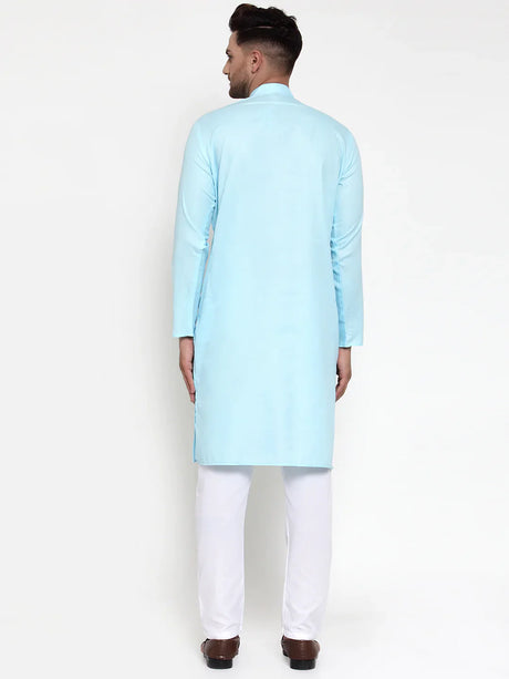 Men's Royal Blue Silk Embroidered Full Sleeve Kurta Churidar