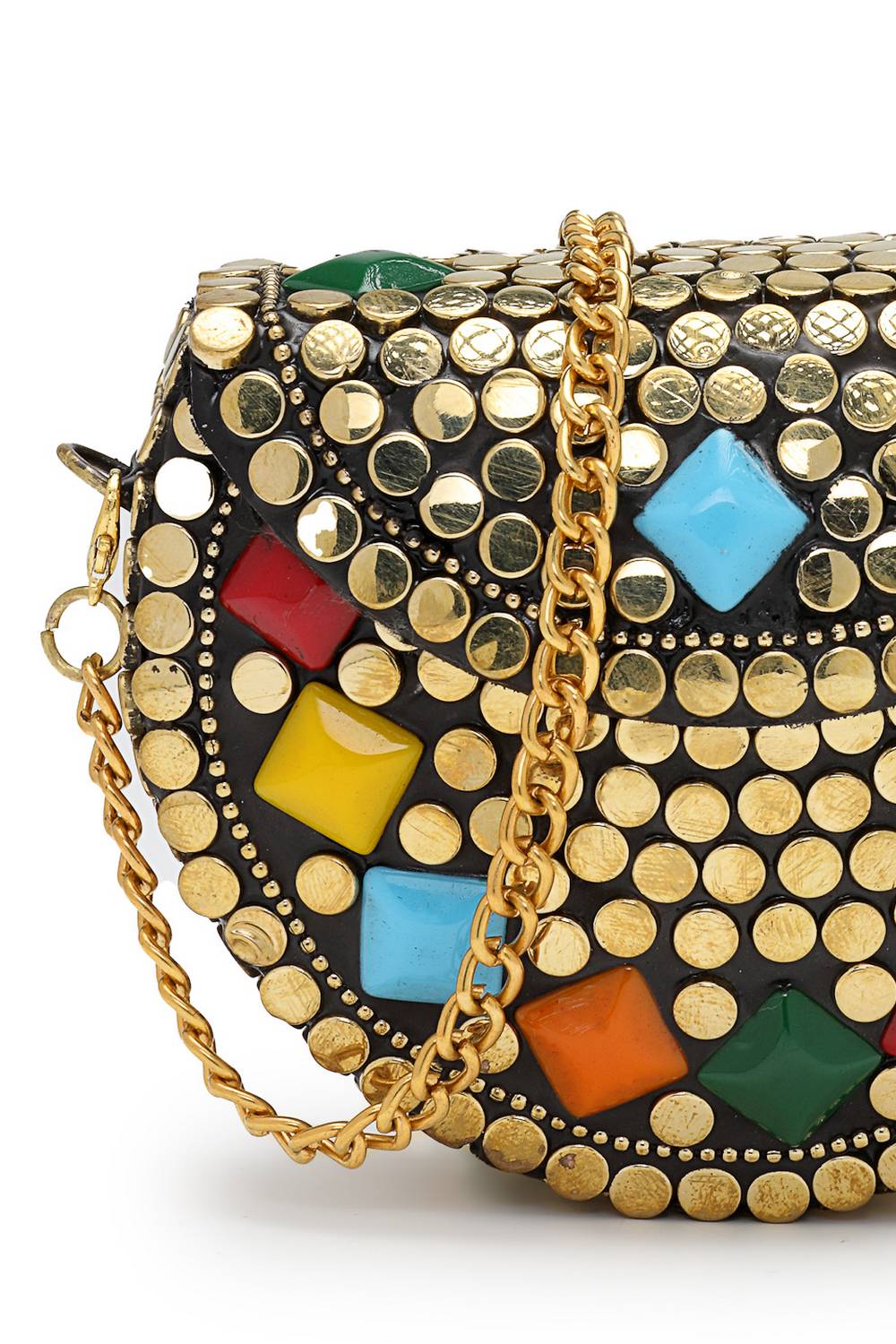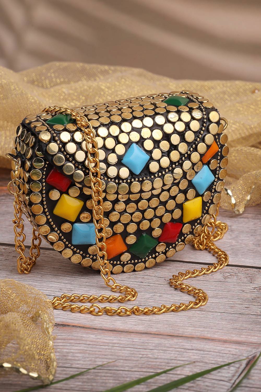 Multi Color Embellished Metal Clutch