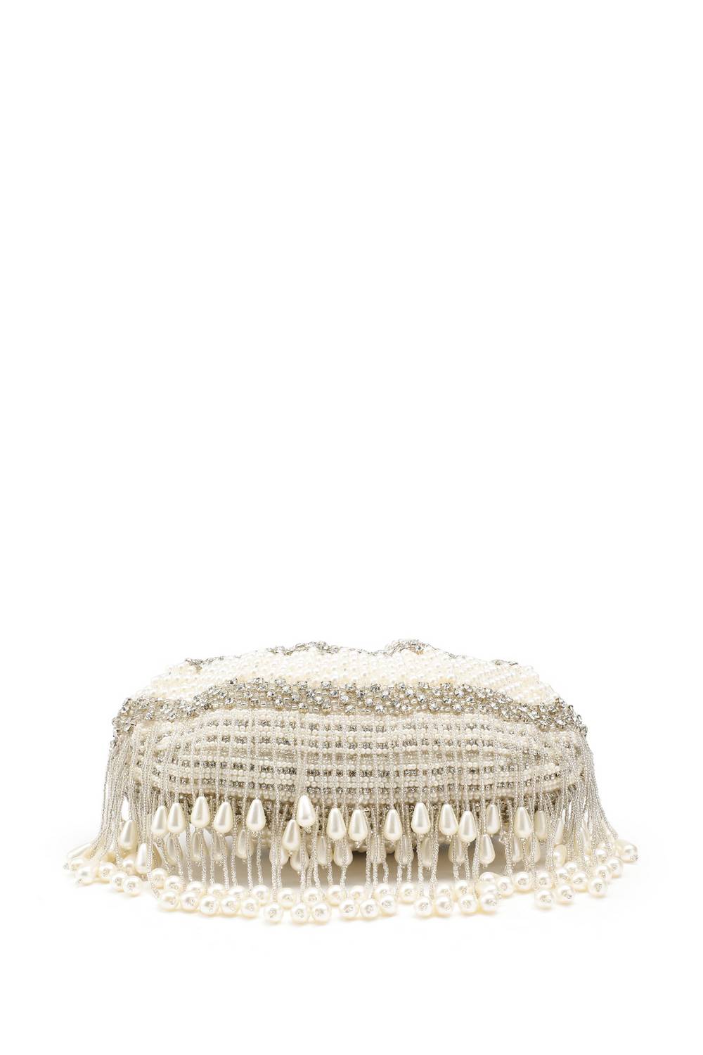 White Pearl Embellished Velvet Clutch
