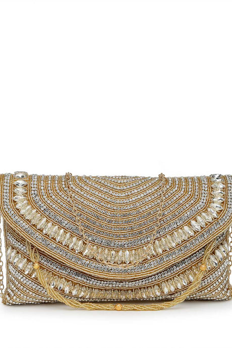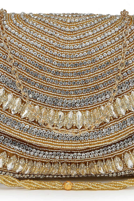 Gold Embellished Material Clutch