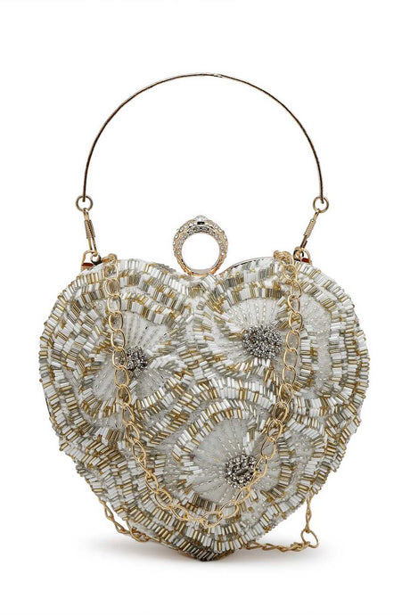 White Embellished Faux Silk Clutch