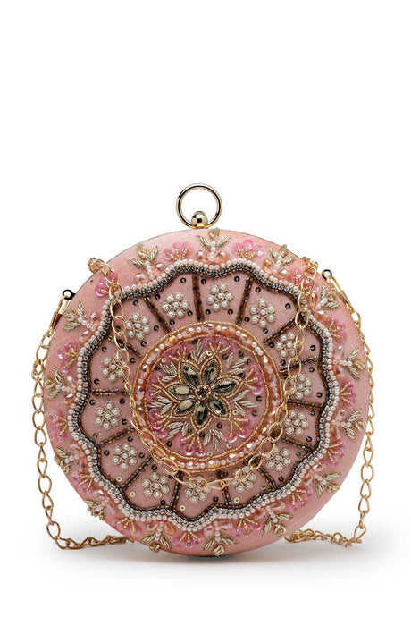 Pink Embellished Faux Silk Clutch