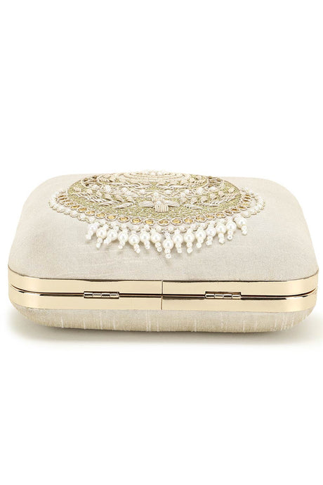 Vista Off White & Gold Embellished Faux Silk Clutch