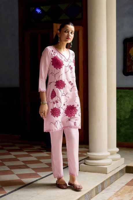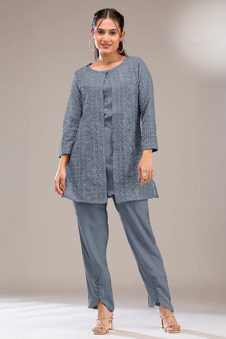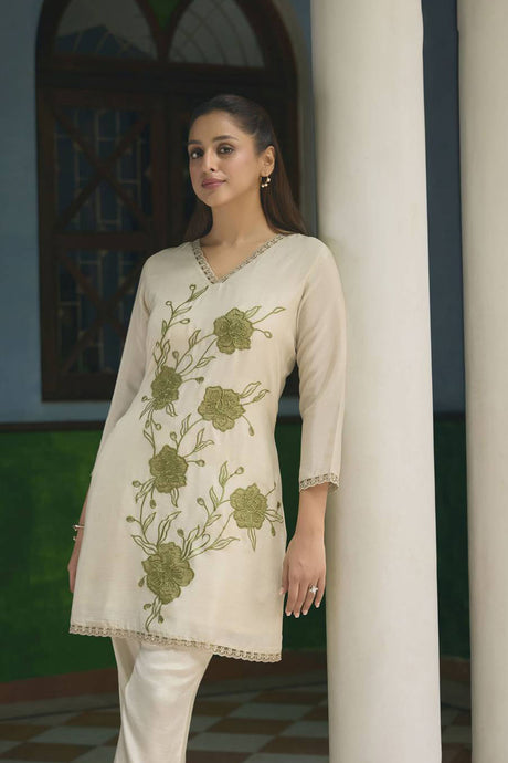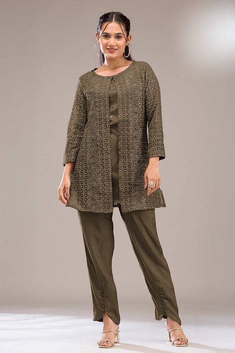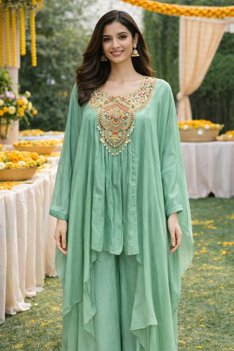 Sea Green Floral Embroidered Viscose Co-Ord Set