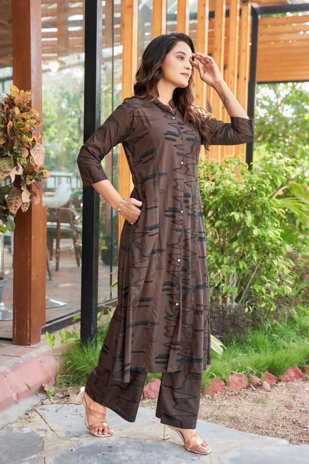 Brown Printed Rayon Co-Ord Set