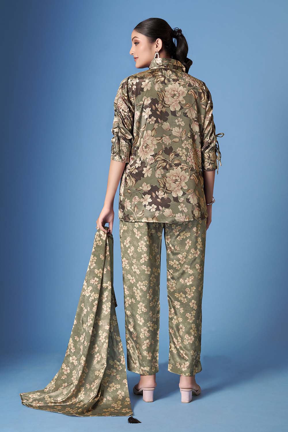 Green Floral Printed Crepe Co-Ord Set