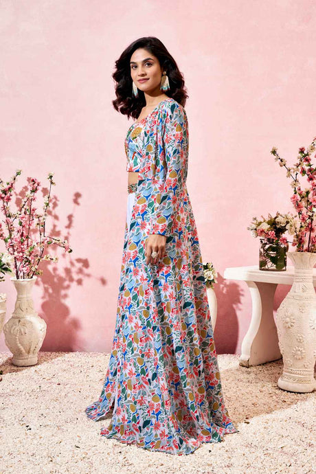 Multi-Color Floral Printed Crepe Co-Ord Set