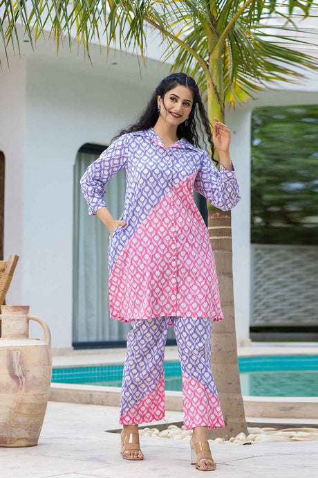 Multi-Color Geometric Print Cotton Co-Ord Set