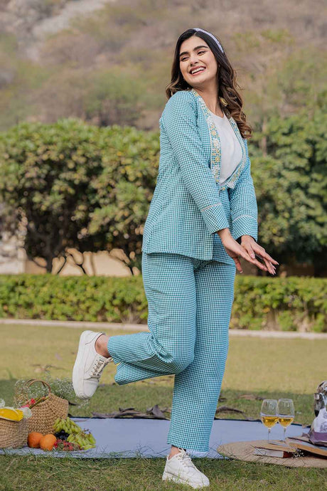 Turquoise Mirror Work?ÿ Net Co-Ord Set