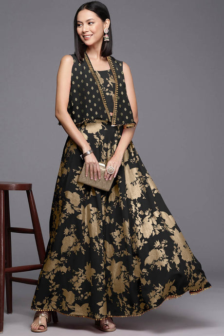 Black Polyester Printed Straight Shoulder Straps Co-Ord Set