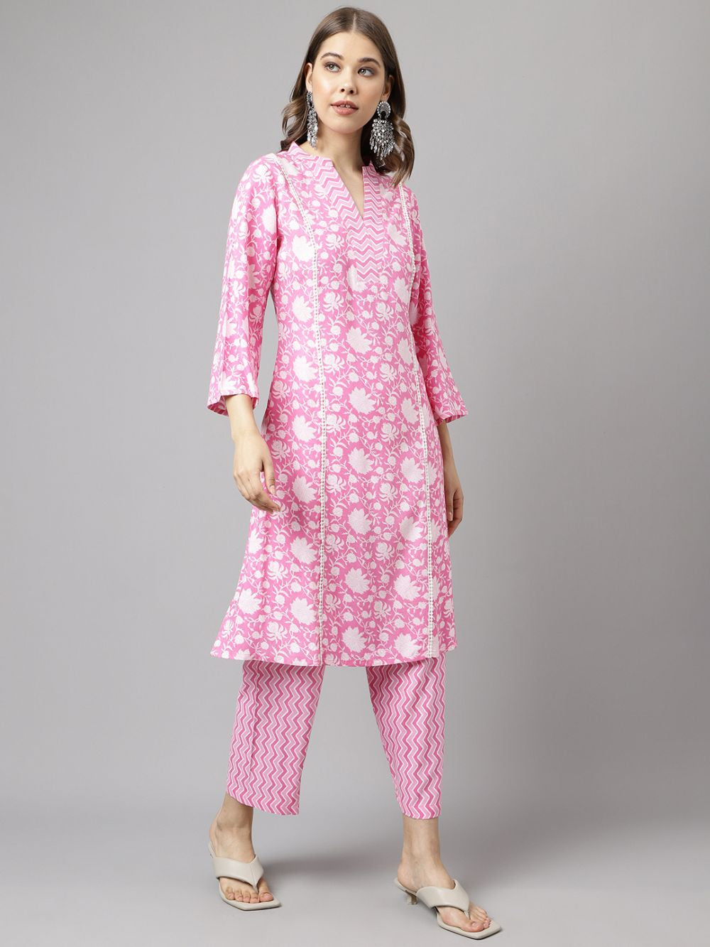 Pink Cotton Printed Kurti Pant Set