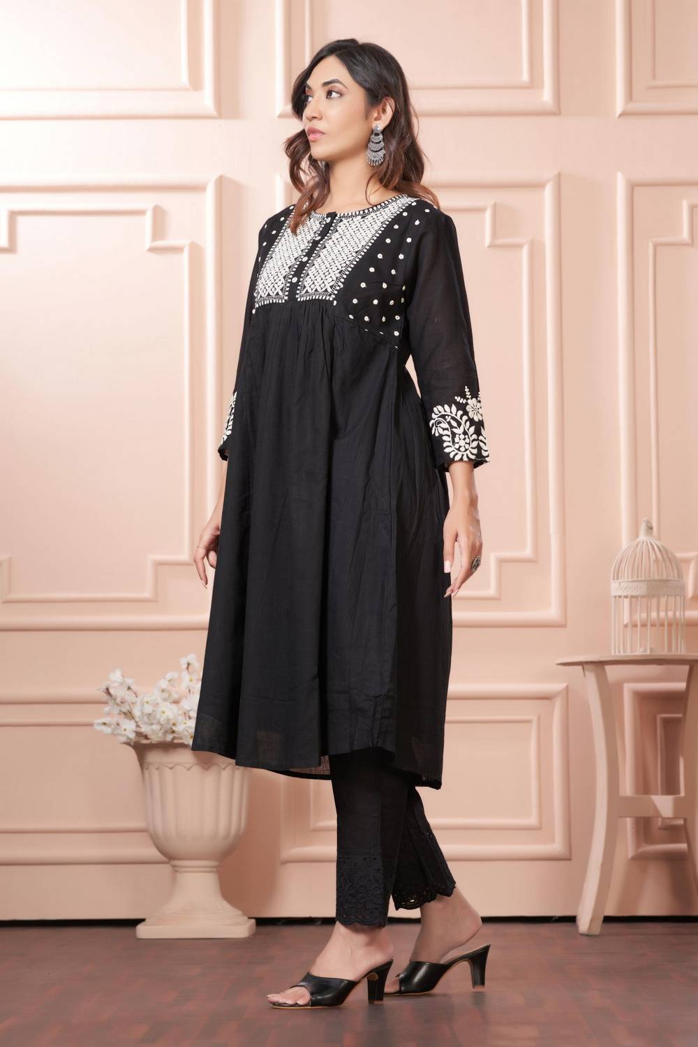 Stay stylish and comfortable with our Anarkali Suit Set designed for all-day elegance. Made with Cotton this set is perfect for easy movement and timeless appeal. The beautiful and intricate Embroidered elevates its design for Casual or daily wear, this kurti set is your go-to outfit. Pair it with elegant earrings and kolhapuri sandals or heels for a traditional look or wedges for a modern edge