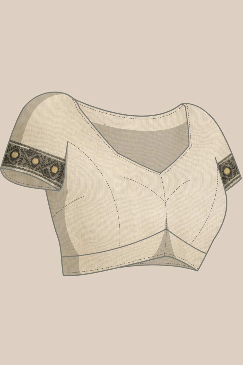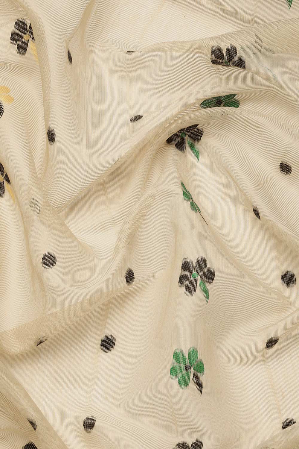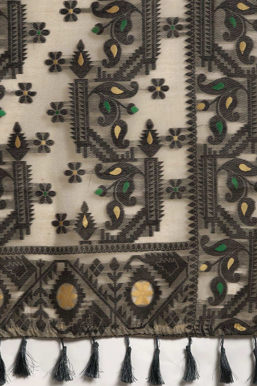 Beautiful light weight Jamdani Saree is from Silk Land. This saree has geomatic pulkari design with small zari detailing border.