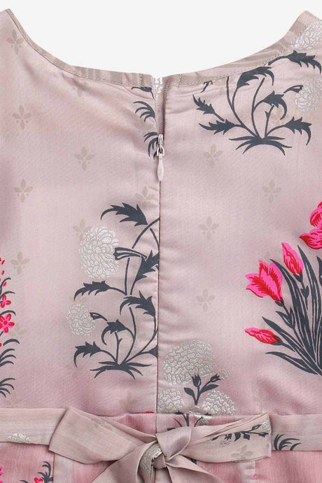 Girls Grey Chanderi Silk Pigment Print Kids Front Slit Kurta Dress